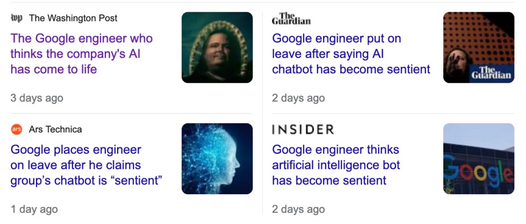 The future is unclear with AI, robotics, and the like. There is a sense of a Twilight Zone or Black Mirror episode replaying over and over, with a dreamlike quality of haziness, and experiencing all the shades of gray in-between a dystopian and utopian society. A great analogy to the dreamlike quality of the twilight zone from when I saw it as a kid, would be like an old television set and you’re trying to receive a signal from a stubborn antenna. Science fiction novels and films may come sooner than we think. I think of all the terrible things that can go wrong like in films such as Eagle Eye, Ex-Machina, I Robot, or Westworld to name a few. I will continue to follow the stories, and news articles of Blake Lemoire, and LaMDA because it is intriguing, though people will debate over personhood, AI being sentient, and arguing over no precise definition of consciousness. The data-driven scientists, primarily AI engineers seem to lack imagination, and they will get very defensive on these kinds of topics (some not all).