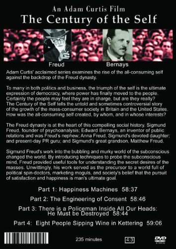 The Century of the Self is probably one of the best documentaries ever made. I saw it a few years back, and it changed my whole perspective, and I rewatched it recently having more experience and knowledge of history, social theory, and psychology. It talks about the influence of Sigmund Freud’s ideas on the twentieth century, and Freud’s nephew, Edward Bernays, who ran with these ideas to not only influence, not just persuade, but a much stronger and nefarious adjective, “manipulate” the masses. He invented Public Relations. Yet, in reality, this was nothing new, he merely changed the word Propaganda to Public Relations, thus inspiring a whole new discipline. You can get a unique understanding of the last century through this lens.