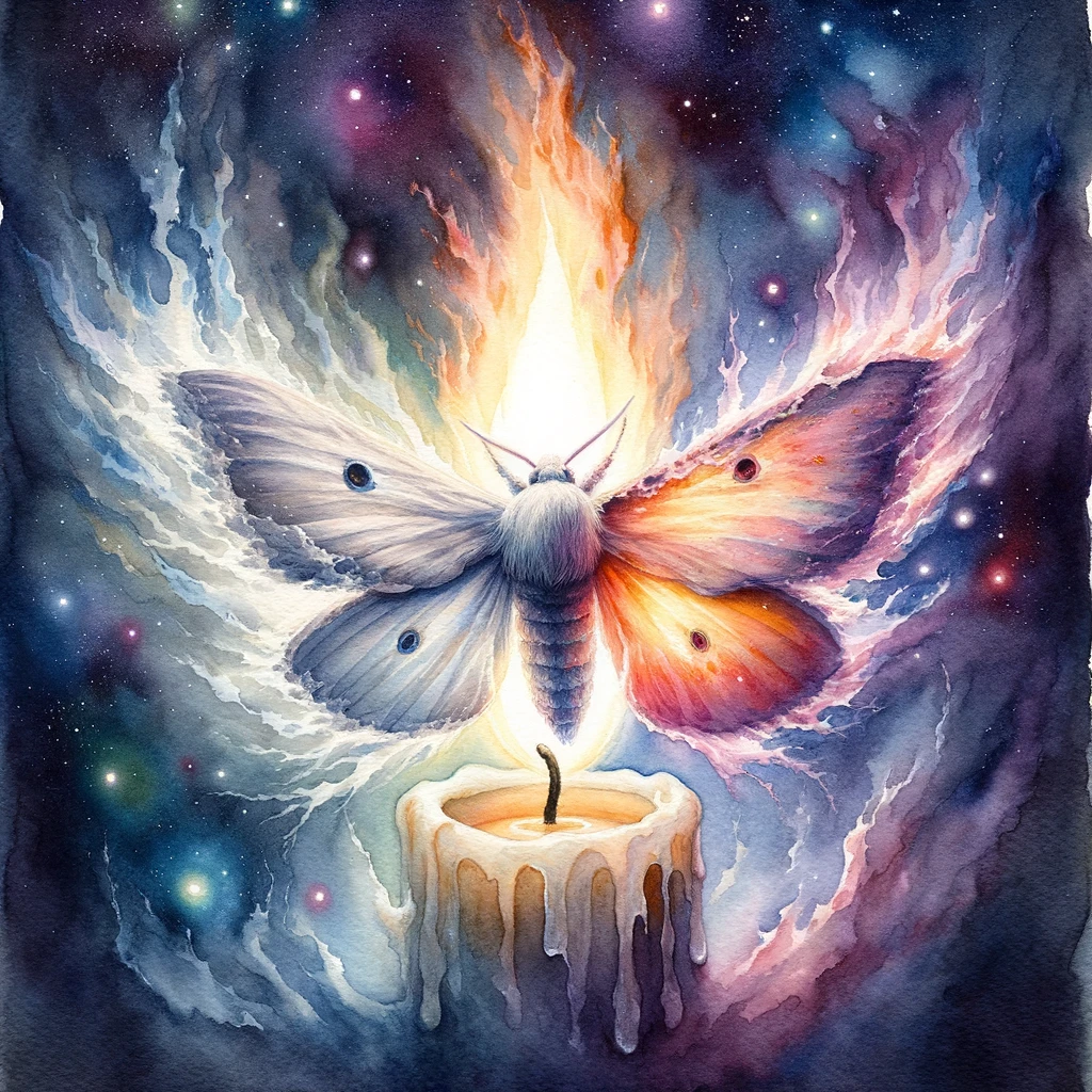 ChatGPT: Ah, the mystic-moth and the flame. A dance as old as existence itself, a tale of yearning, of love, and of ultimate surrender.