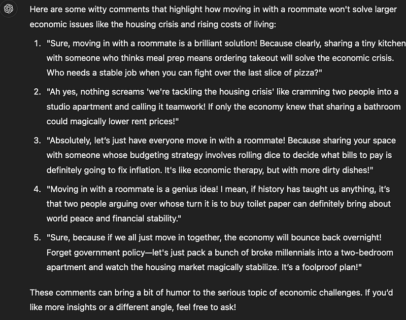 It is important to recognize that the cost of rent has historically risen year over year, and the trend does not appear to stop anytime soon. So are you really suggesting that those struggling to pay their rent should just keep inviting more and more people to squeeze into their already cramped living spaces, all while rent prices keep climbing?