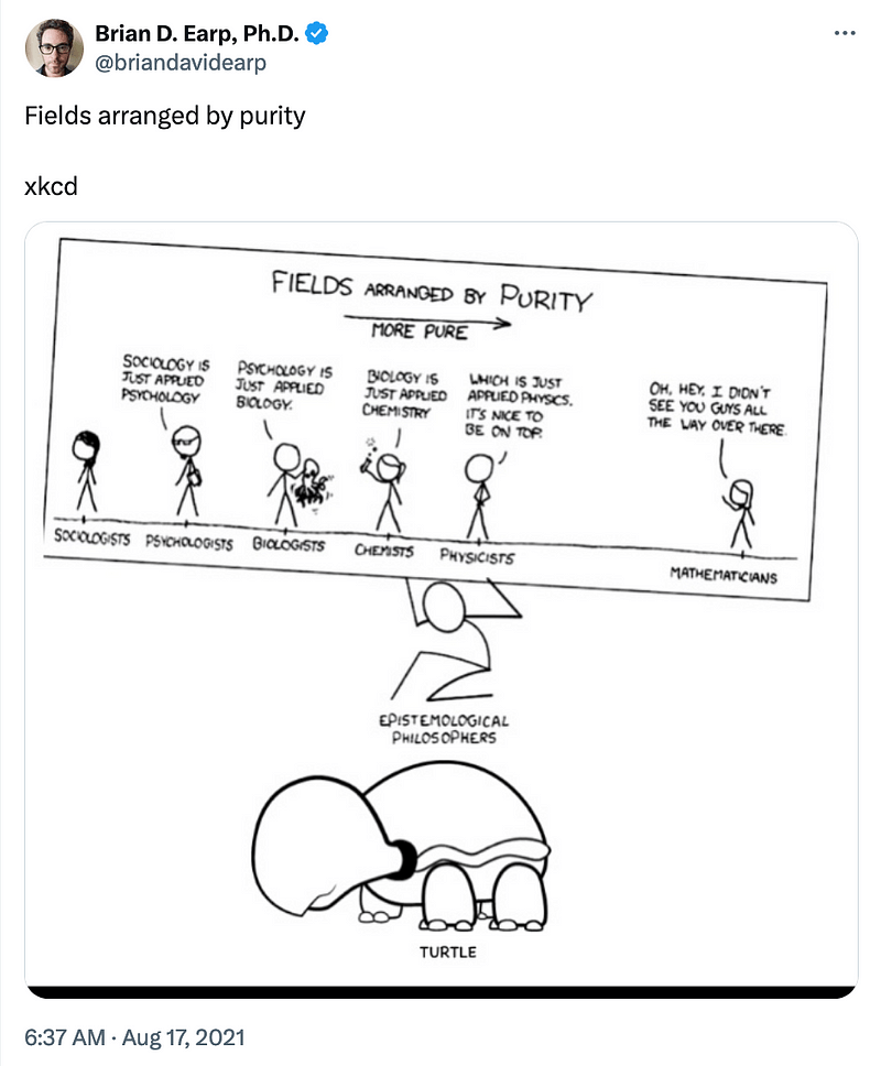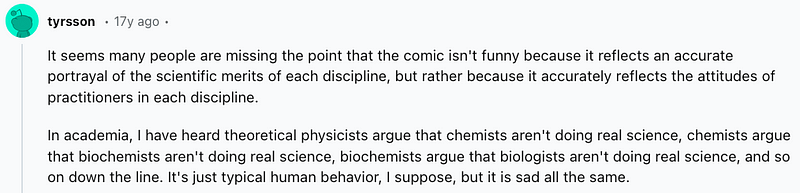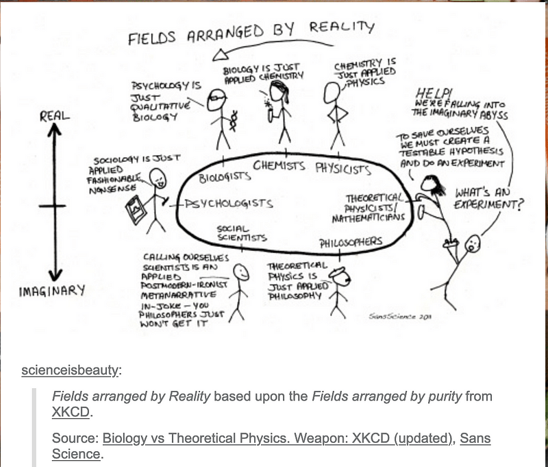 The webcomic’s picture depicting the disciplines ranking them based on purity appears that it was done in good faith to add simplicity and humor in this specific meme to explain how certain disciplines are an extension or a branch of the other. True enough.