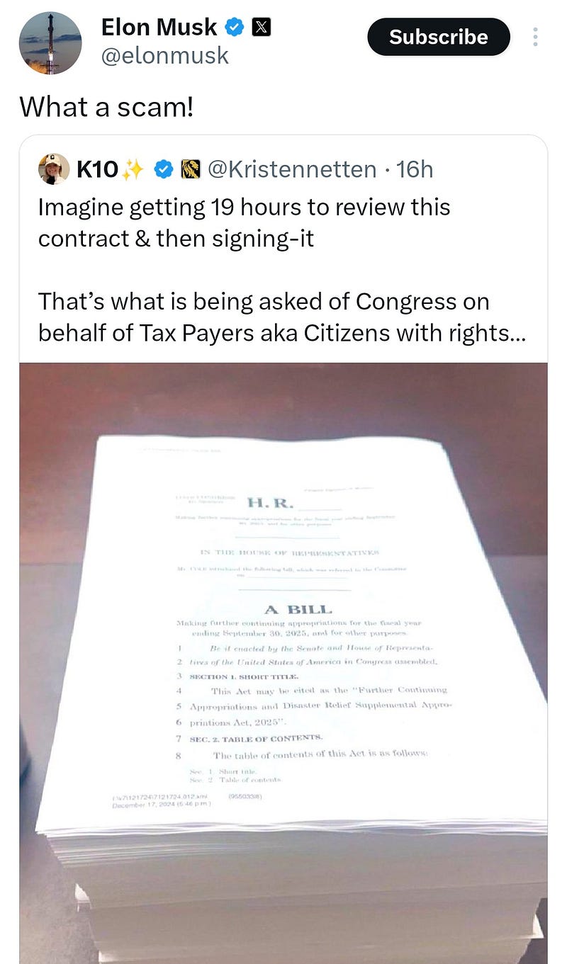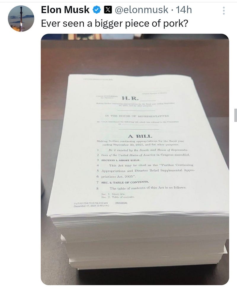 I recently had an epiphany while browsing X (formerly Twitter) and came across posts by Elon Musk criticizing the congressional omnibus bill that is released annually. Every year, this bill sparks controversy. Musk often reacts strongly to such topics, particularly when they involve the U.S. government. His posts often seem intended to provoke emotion and outrage rather than provide substantive information—especially if X is to be viewed as a modern-day digital town square.