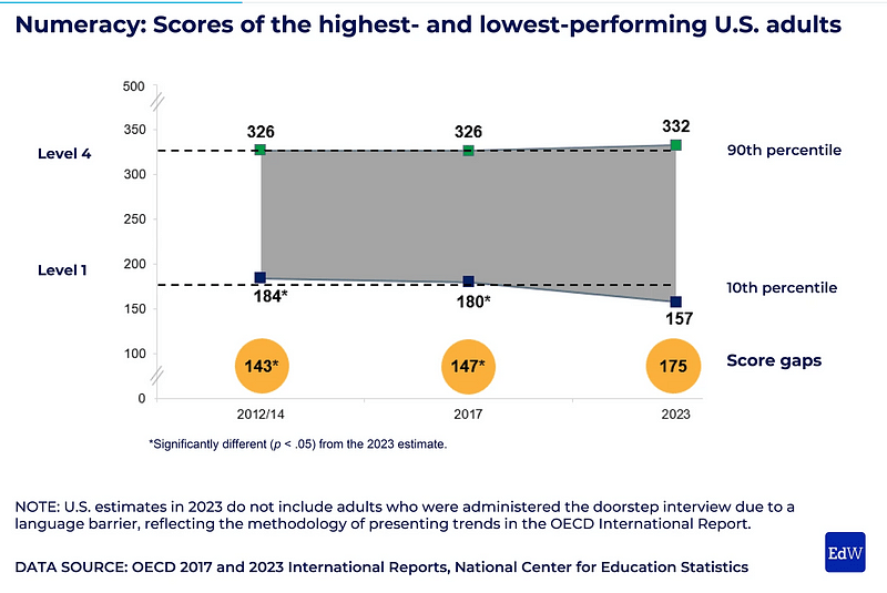 As you probably guessed, the numeracy or math level for Americans is worse than their literacy level, and the pandemic has only exacerbated these numbers with many students showcasing this reality due to fallen behind in their studies.