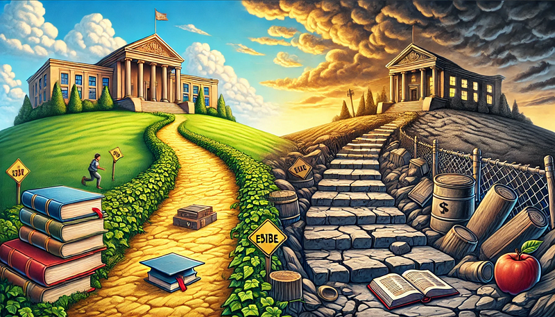 Public schools aim to provide equal opportunities, but funding disparities, teacher shortages, and other systemic challenges can hinder this goal. I know other factors played a role in why American public schools failed, like demographic shifts or when white flight unintentionally caused a funding gap for public schools in urban areas for low-income families because the wealth was gone with them to the suburbs. Federal funding was introduced to help close the gap for underfunded state-level schools, but its impact was limited by budget constraints and significant cuts during certain administrations, such as Ronald Reagan’s.
