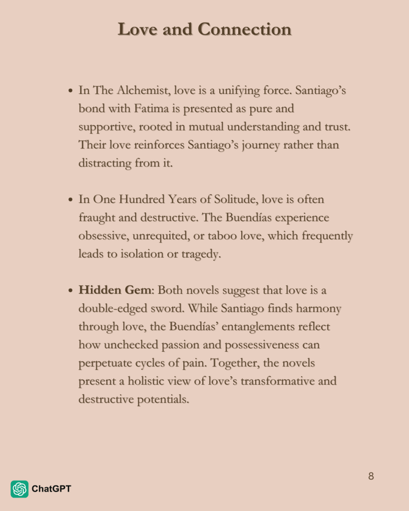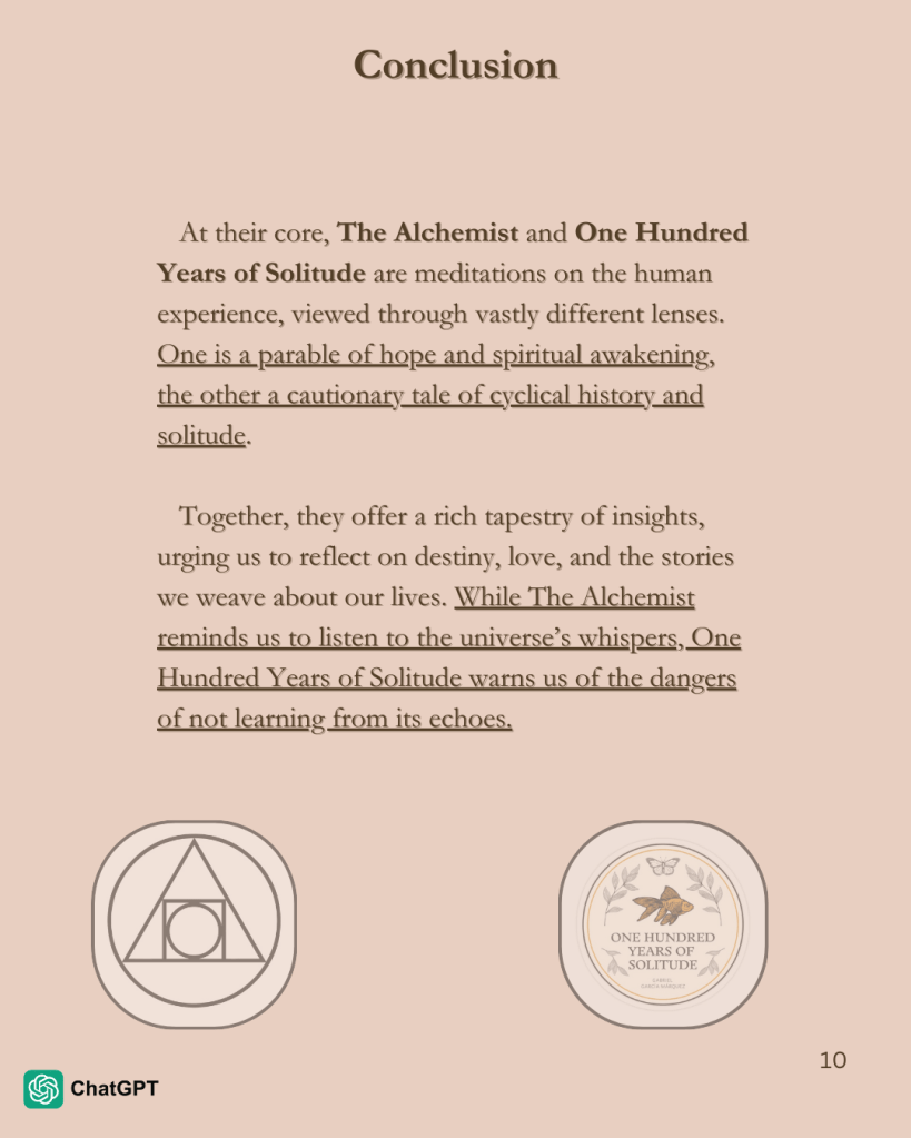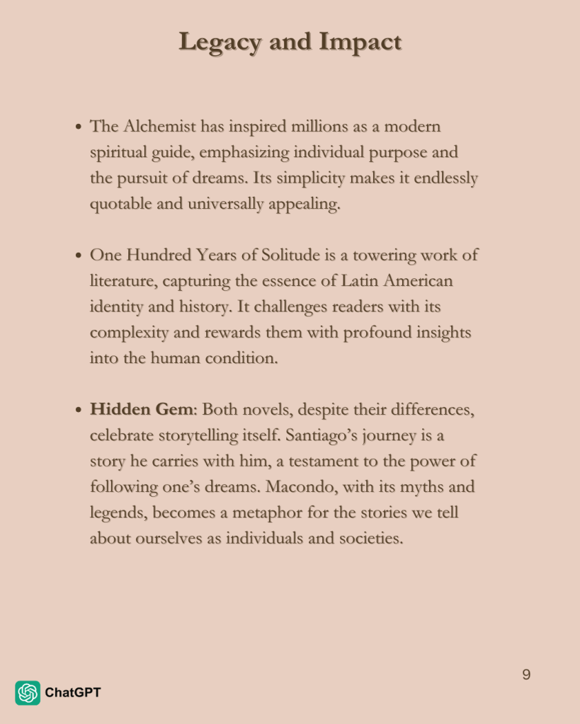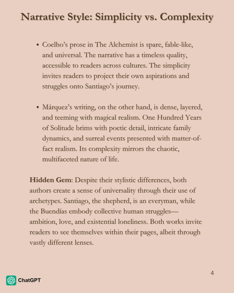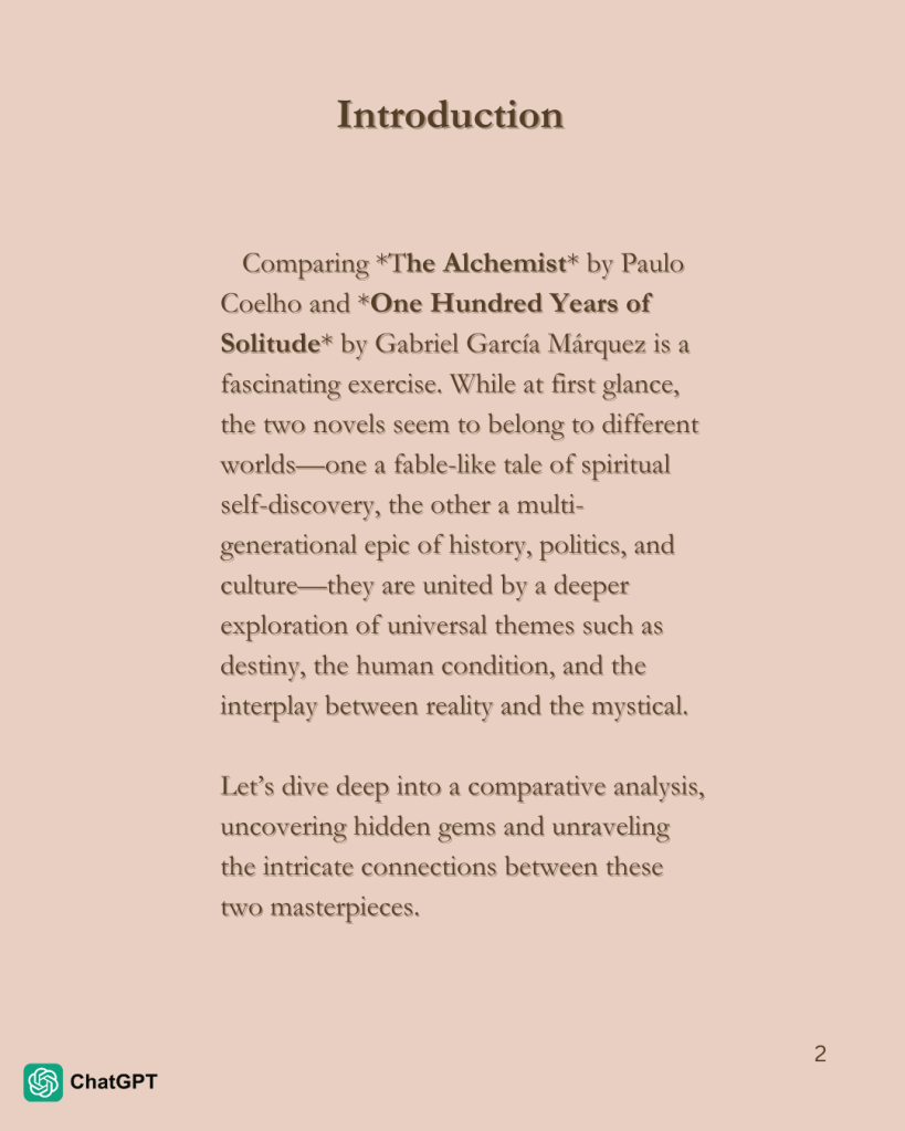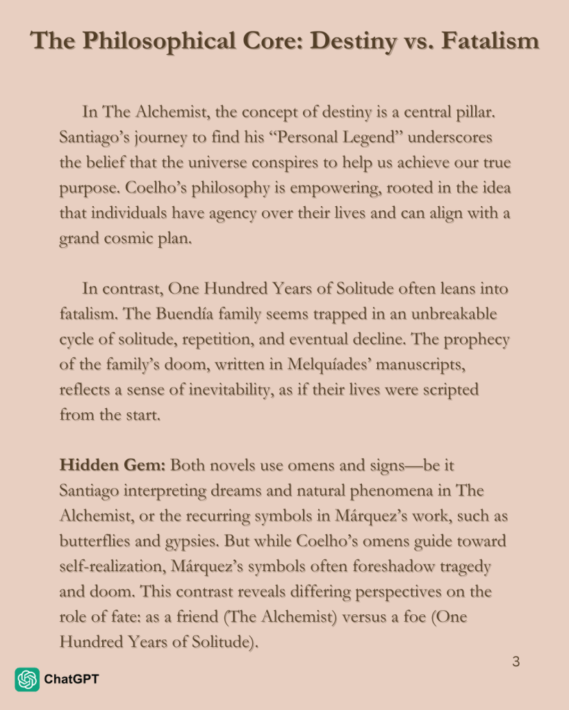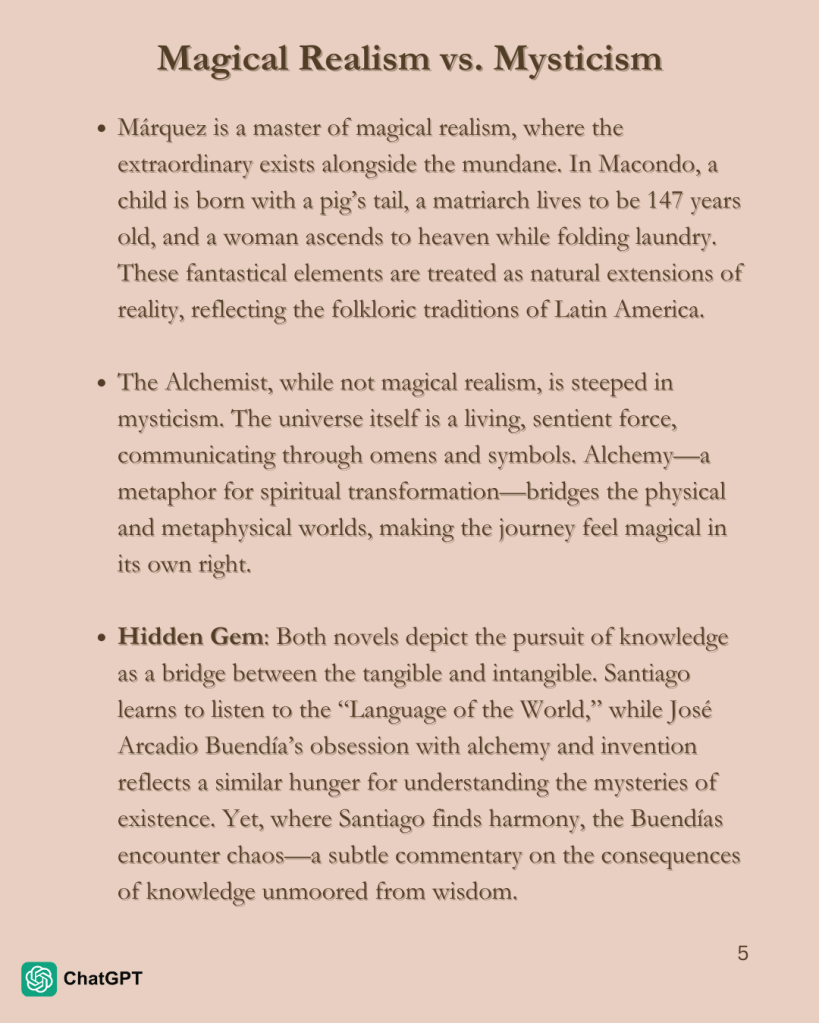 A Comparative Analysis of “The Alchemist” and “One Hundred Years of Solitude” by ChatGPT.