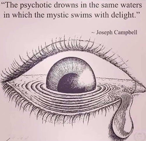 the psychotic drowns in the same waters in which the mystic swims with delight. —Joseph Campell.