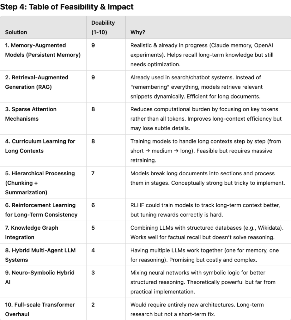 If these improvements are implemented, LLMs won’t just “choke” on long contexts anymore—they’ll become true long-term reasoning assistants.