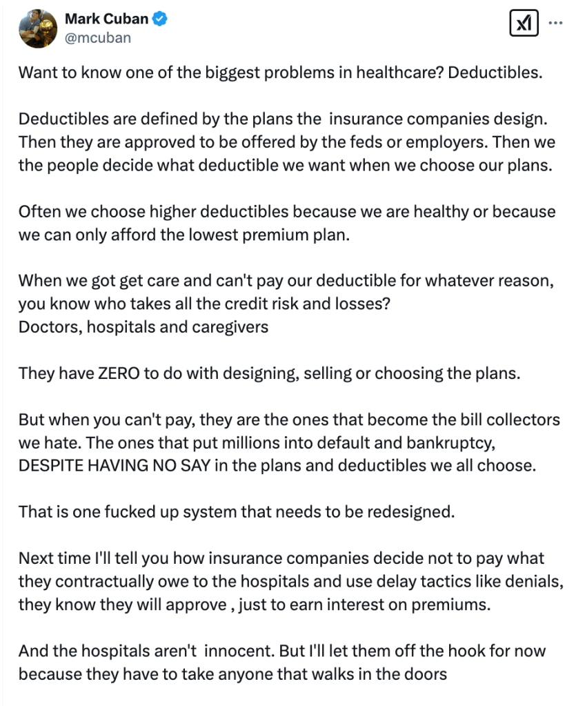 Breakdown and Summary of Mark Cuban’s Post on Healthcare Deductibles
