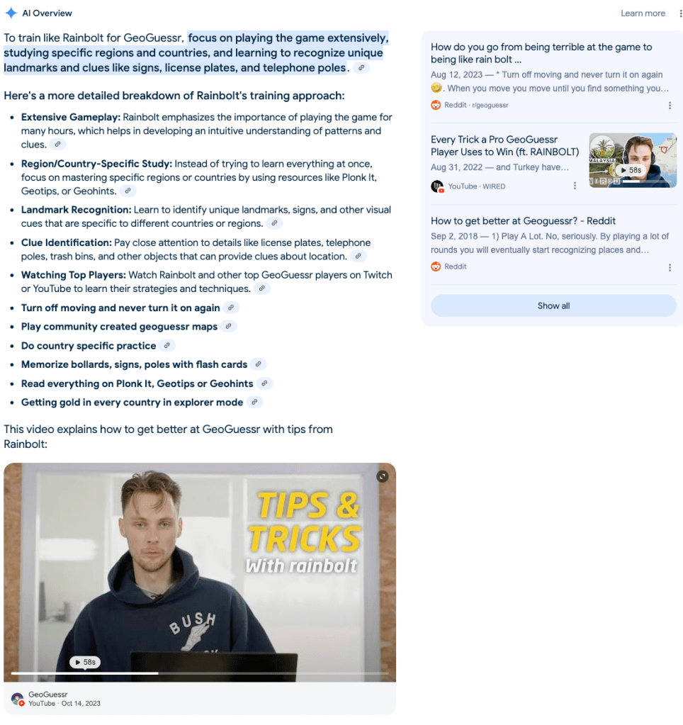 Me: Can you explain Rainbolt’s abilities as a geoguesser? Why and how is he so good at it?