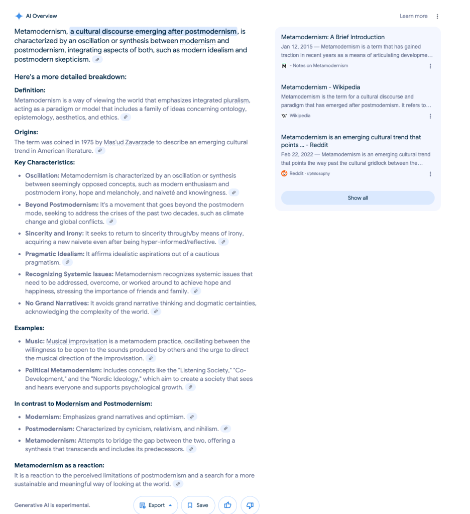 Me: Continue with metamodernism.