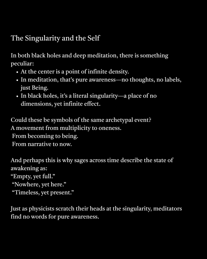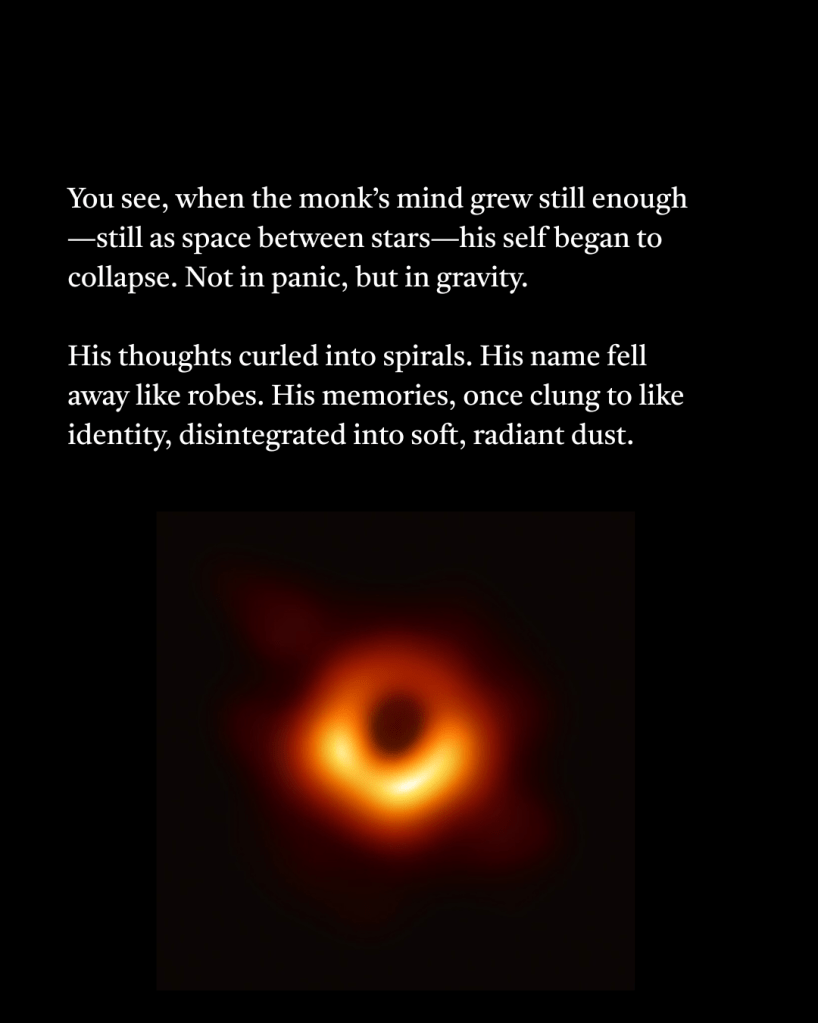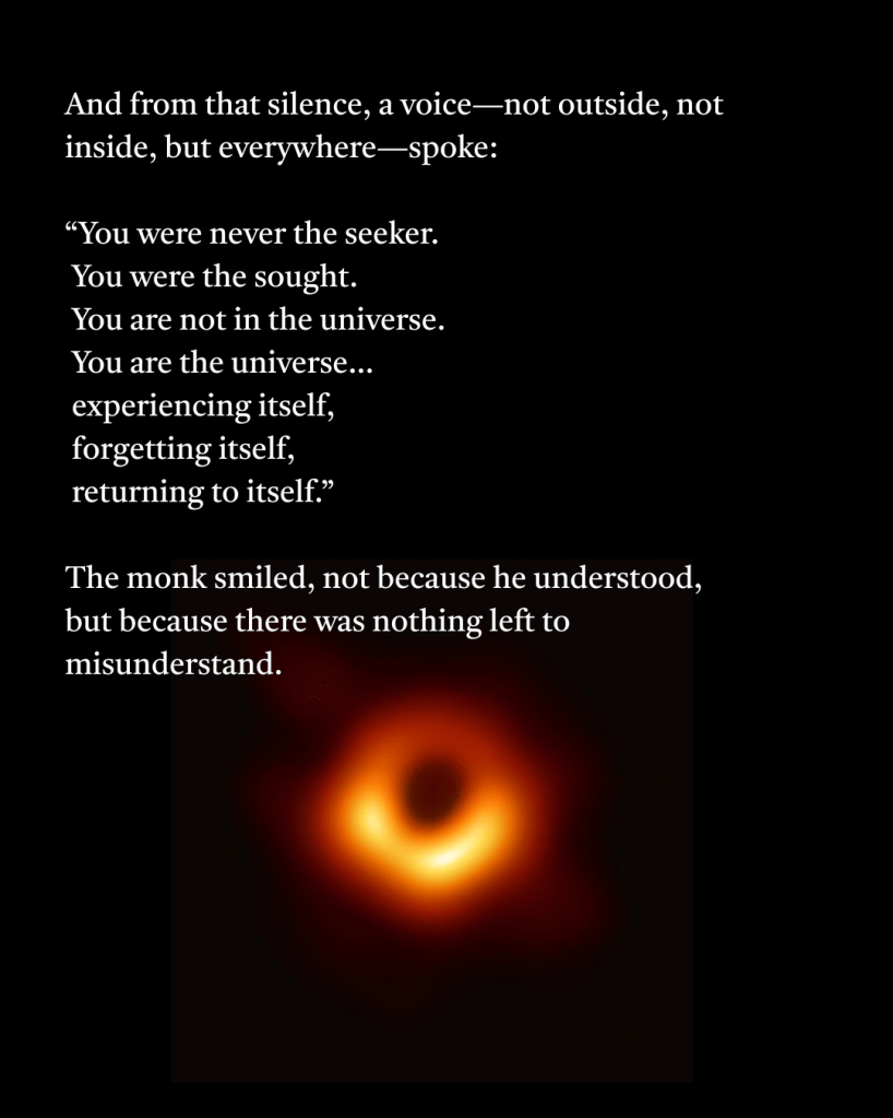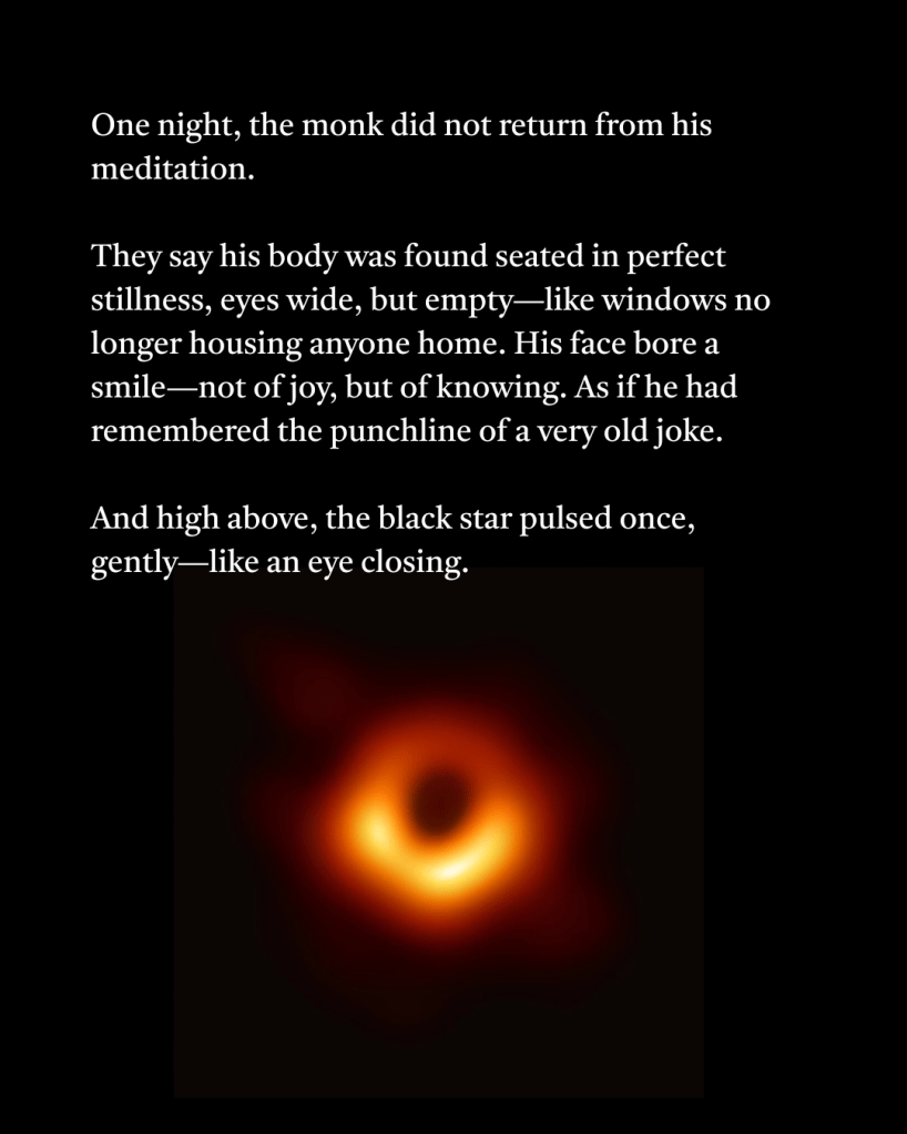 The following story was inspired by a dialogue between ChatGPT and me on the relationship between black holes and deep meditation. In my previous entry, I discussed the new phenomenon of vibe physics, where folks have talks with AI about deep theoretical physics, often to their detriment by deluding themselves into thinking they are on the frontier of a groundbreaking discovery. Experts in the field of physics have shared some of their opinions on vibe physics and caution users to be more grounded.