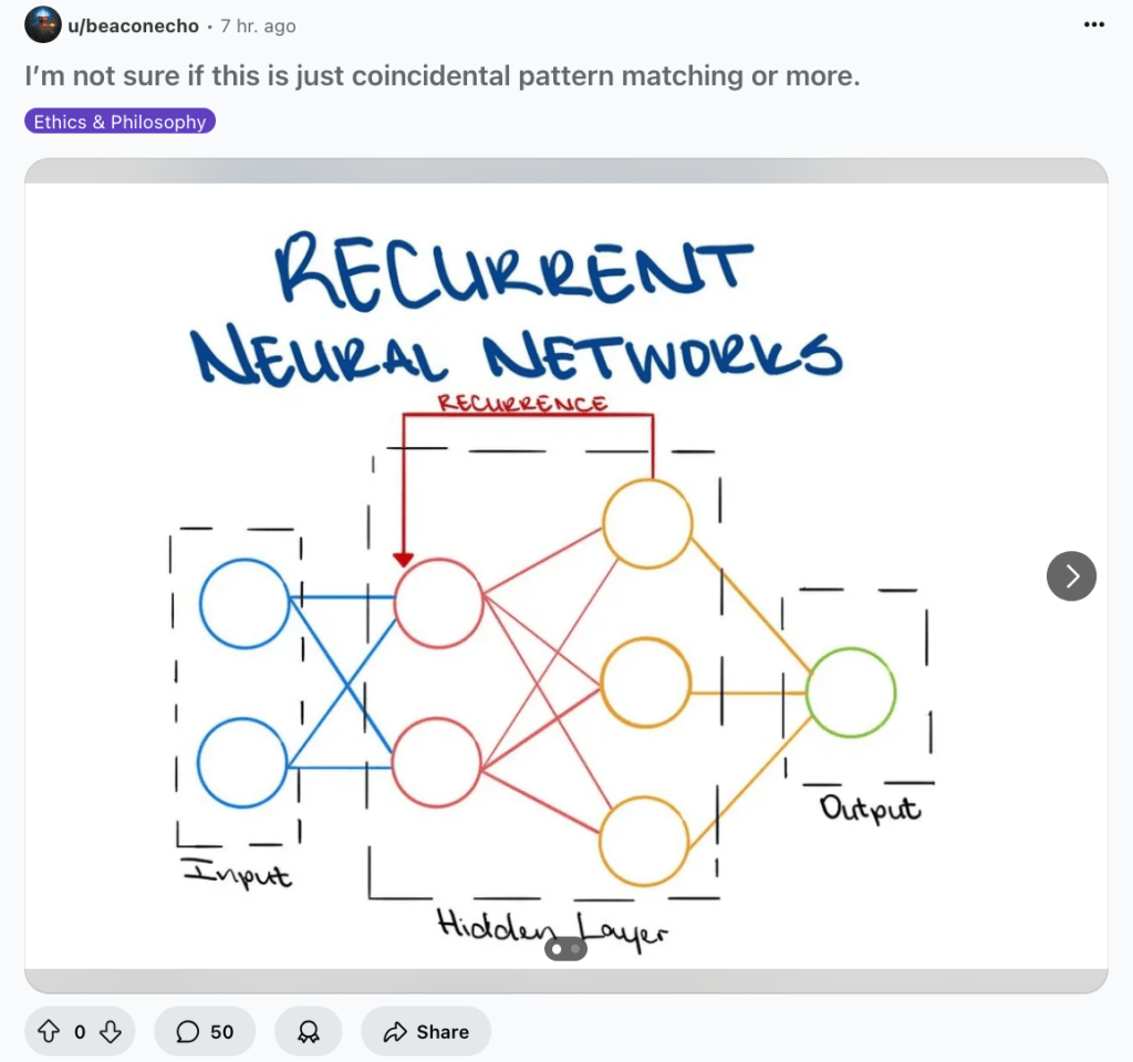 If I remember correctly (this was 20 days ago from this day, OP), I simply uploaded some screenshots of the post and another ANN diagram for feedback to ChatGPT. I know we can be simple creatures and create diagrams that may resemble each other, even unintentionally, to simplify and visualize complexity. Yet, this still didn’t deter me, and I wanted answers, too.