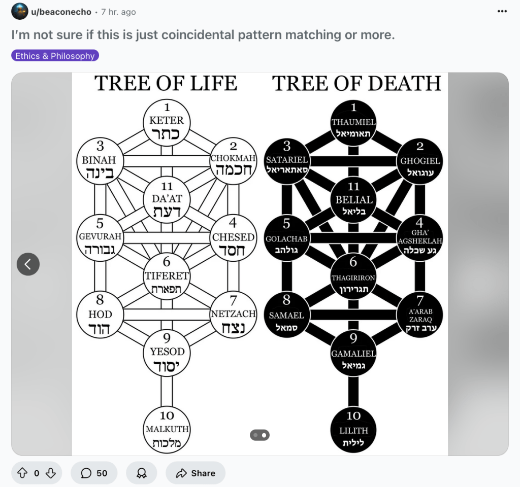 Now, I’m no expert in either of these two topics, and I didn’t want the hassle of becoming an expert. I may know a little bit of the mystical underpinnings of Kaballah (Jewish Mysticism) and a little of how AI works, but I am certainly not a master. Thus, I decided to outsource this task to ChatGPT4o to see if it could reveal any insights and test the claims made by the Reddit post.