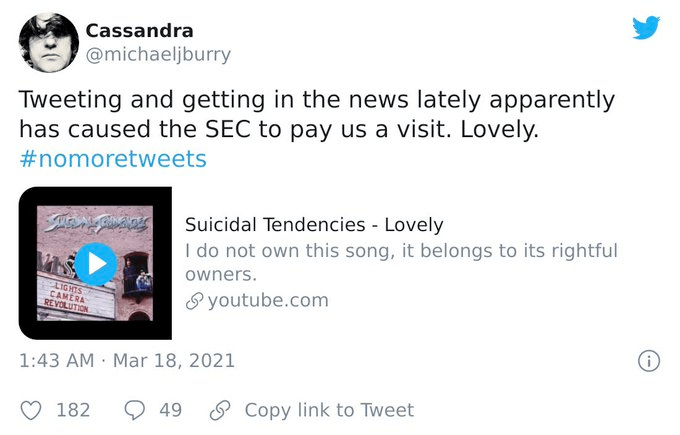 Below are some of the tweets Michael Burry posted in 2021 (from Google images) that obviously had everyone’s attention, including the mainstream media, which likes to publish stories of his positions and views, often falsely misreporting his stock positions.