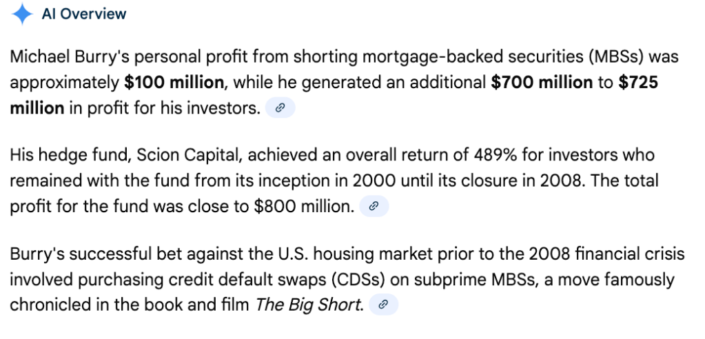 I’d be lying if I said I wasn’t using Artificial Intelligence or LLMs to help me interpret some of Michael Burry’s tweets because he can be quite cryptic at times. When he returned, I did use ChatGPT, and in particular, OpenAI’s Web browser Atlas, so it could easily see the same webpages I’m looking at. I must add, this is quite a good direction for OpenAI for users to use a browser that ChatGPT can collaborate with in some way, although ChatGPT isn’t fully capable of seeing the images on a website, to my knowledge, unless one uploads screenshots, etc.